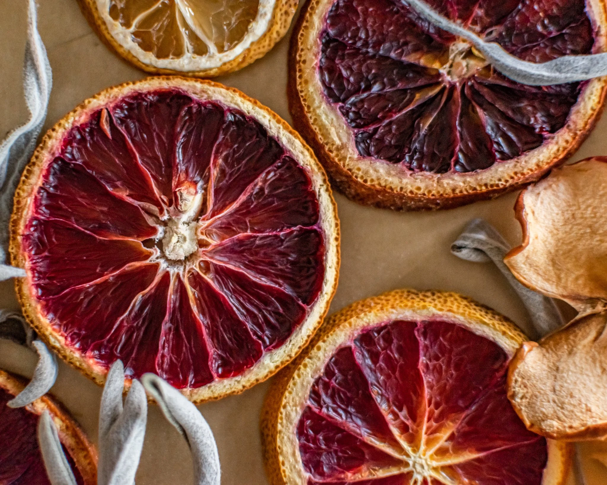 You do not have to dehydrate the cinnamon sticks, ginger and pepper. Those already have the smell you want. The main takeaway is to use a lot of cinnamon sticks. When making your own potpourri, it won’t be as potent as buying the factory made bags. In my batch for one jar, I used 1 of each fruit but 3 of the blood oranges, because those have the most fragrance when dried out. I also used a handful of cinnamon sticks, peppercorns, pomegranate seeds and about 5 star anise seeds.